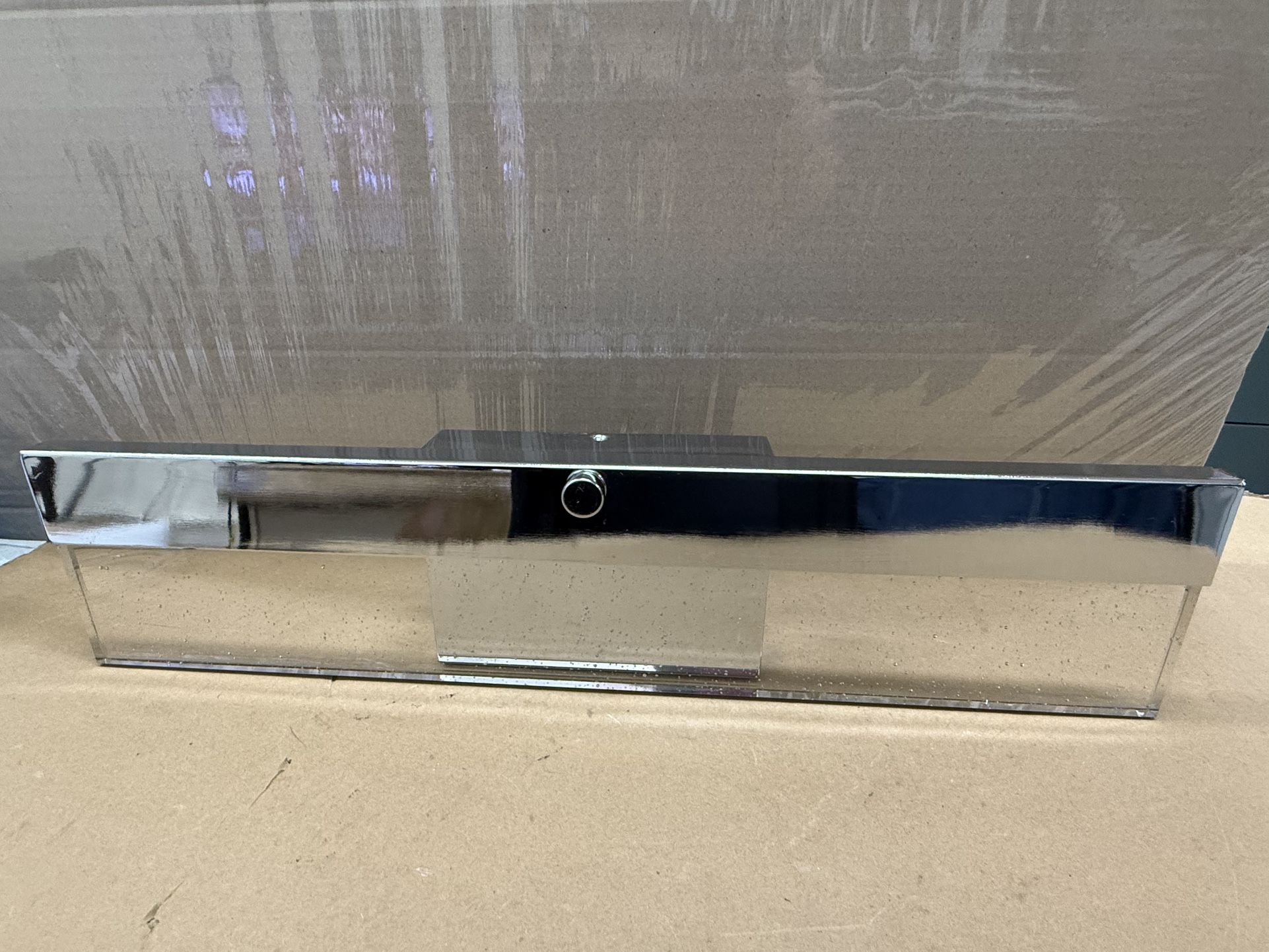 Open box Item: — AW06a16001L-C Motion sensing nightlight Finish: Chrome Shade: seedy glass Dimmable Measurements: 22.8 IN W x 5.1 IN Hx 2.2 IN D ADJUSTABLE WHITE: 2700K — WARM WHITE 3000K — SOFT WHITE 3500K — NEUTRAL WHITE 4000K — BRIGHT WHITE 5000K — DAYLIGHT