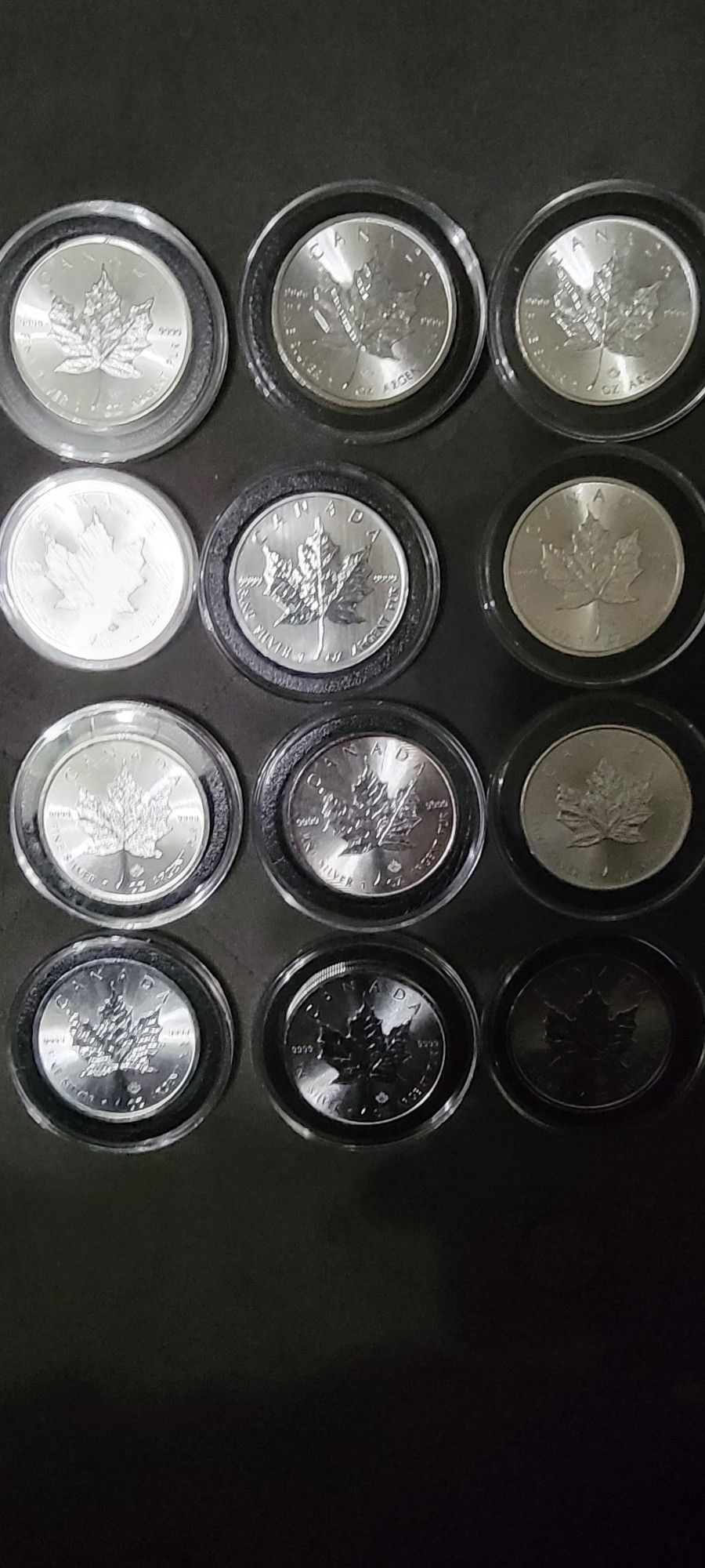 12 silver canadian maples. All in air tites. 11 of the 12 have a privy mark.
