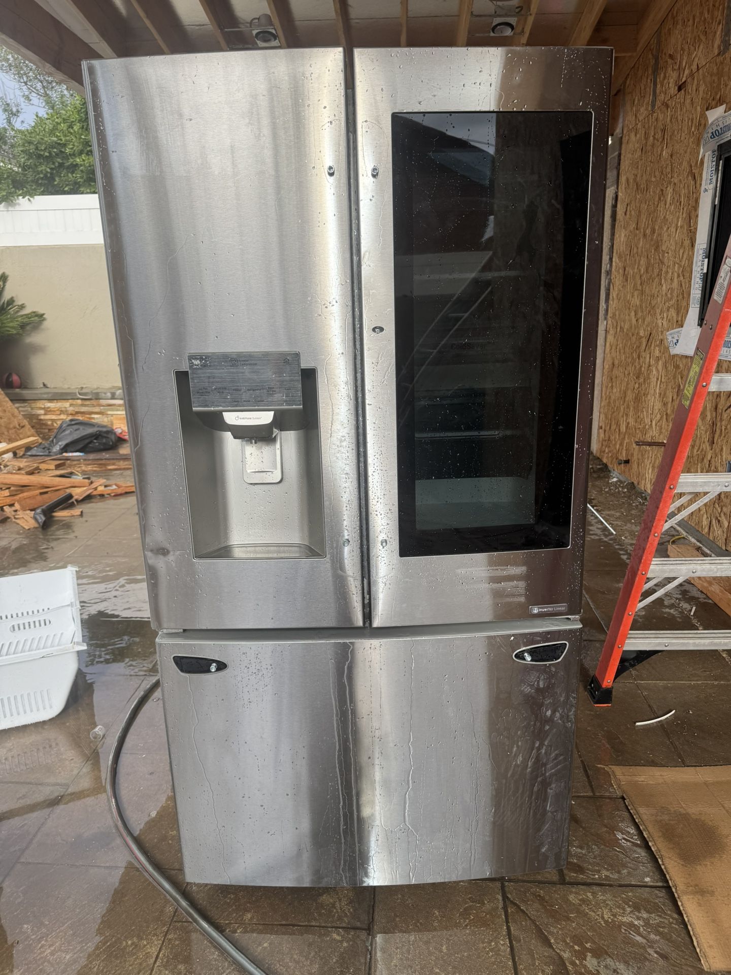 Selling LG refrigerator. $600. Needs a Deep cleaning. Has been in my garage 3 months. My home is under construction. You will need to bring extension cord to test it. I only have 1 working outlet. Serious buyers only. No negotiations. I’m not desperate to sell. I have the handles. I took them off in order to fit through my door.