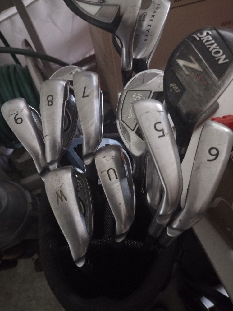 Seven (7) Regular steel shaft irons, yellow dot. 5,6,7,8,9, PW, SW Also have a lh Odyssey putter ($75) additional