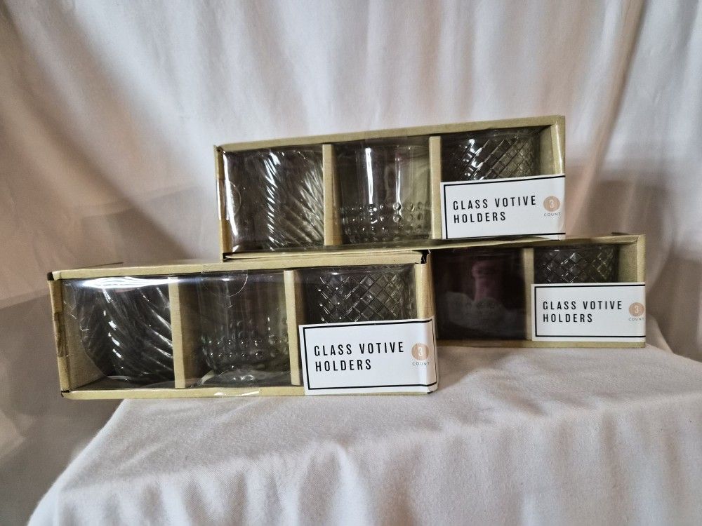 Clear Glass Candle Votives Three 3 Packs (9 Total)