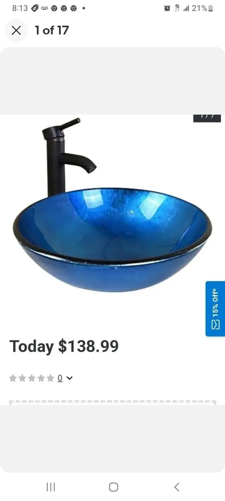 Bathroom blue glass sink oil mill bronze faucet and pop-up drain pipe...
