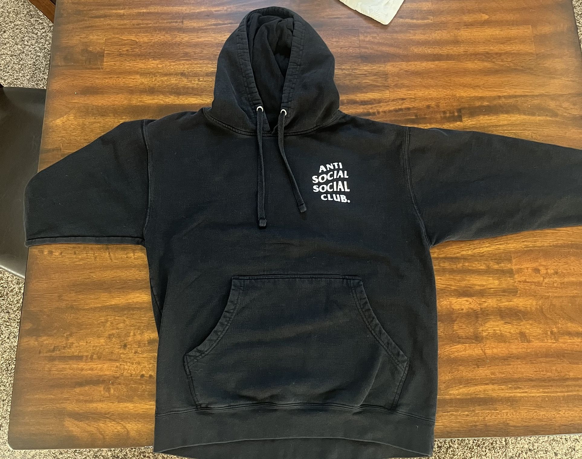 Medium size worn but no stains, tears, rips or anything wrong with it still great condition.