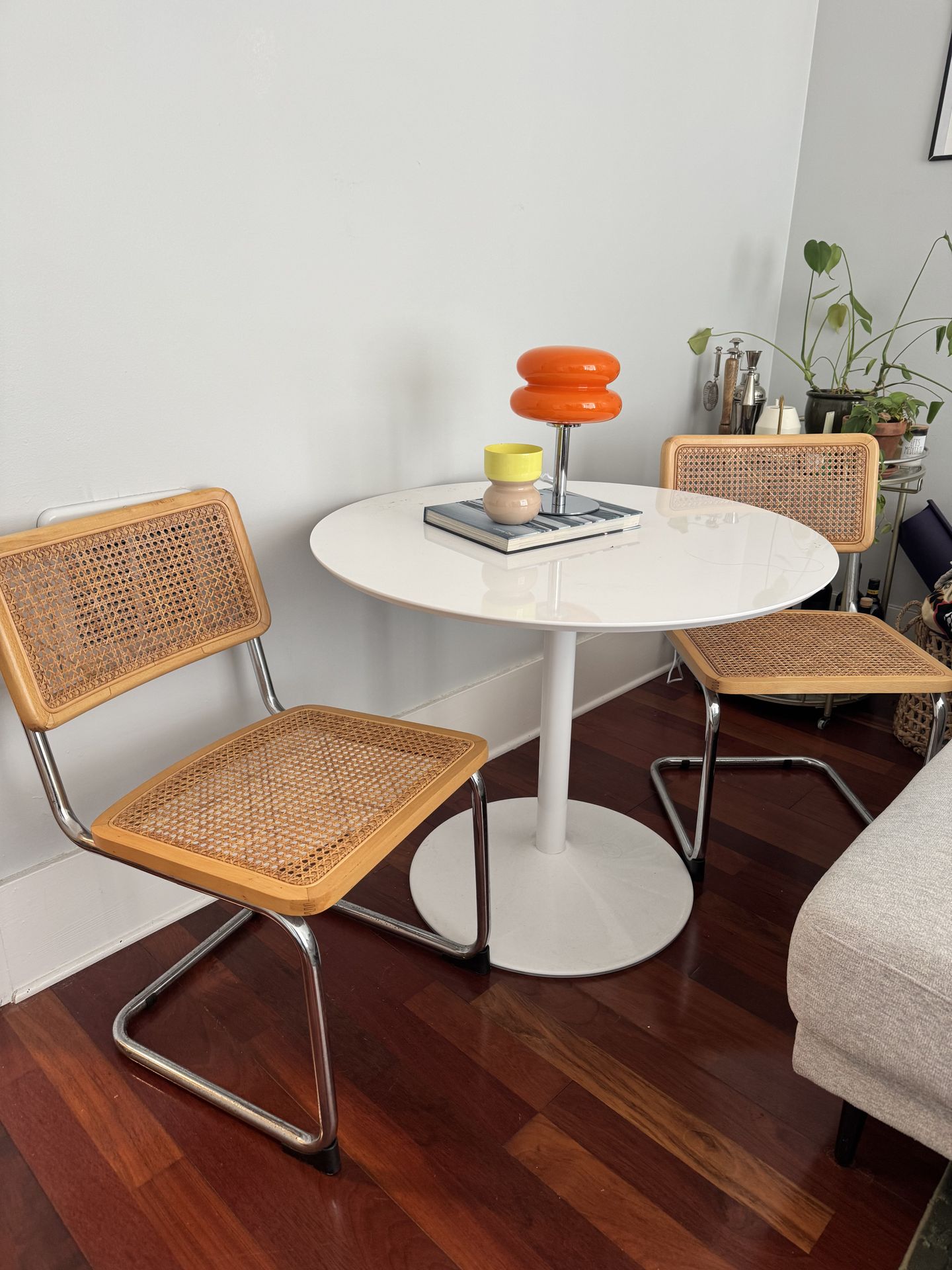 Used Round white table with two Scandinavian designs chairs