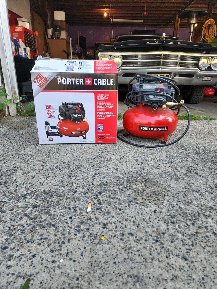 Portable Air Compressor: Oil Free, 6 gal, Pancake, 0.8 hp, 2.6 cfm @ 90 psi, 120V AC