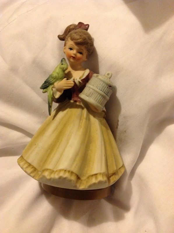 Little girl holding bird music box
