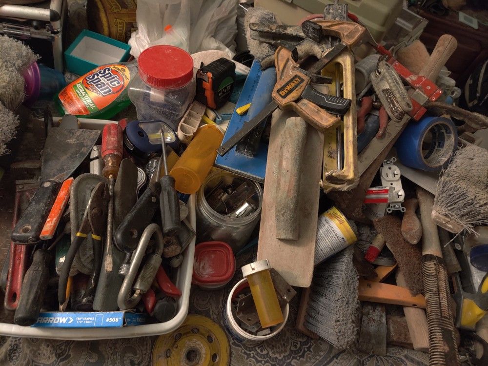 $150 a huge bundle of tools, everything from tile selling carpentry handyman type. Hammers, screwdrivers, putty knives, tile spacers, nails, screws, levels, pliers, wrenches, ratchets, sockets, mallets you name it it's here.