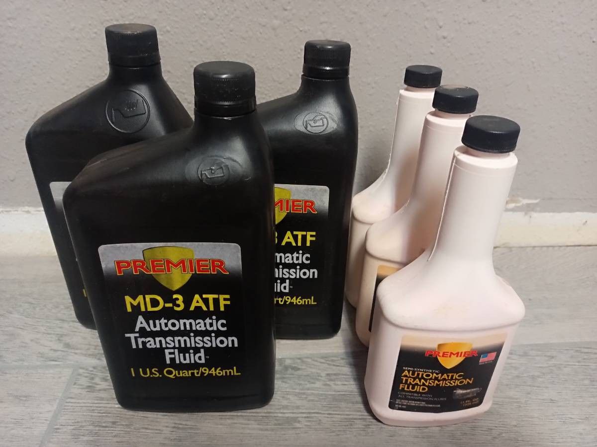 Premier Automatic Transmission Fluid 3 quarts in black 3 bottles 11 oz each in white. All for just $15! I HAVE LOTS MORE POSTED, SO CHECK OUT MY OTHER STUFF! . . . engine, oil, replacement, repair, lube, tune-up, scheduled maintenance