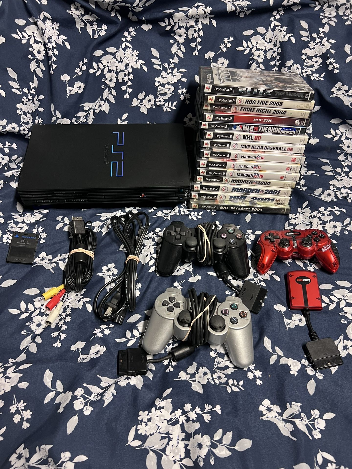 PlayStation 2 Bundle Color Black Comes with 15 Games 3 controllers 1 storage cards And all the plugs needed I’m asking $175 Message me if you have any questions