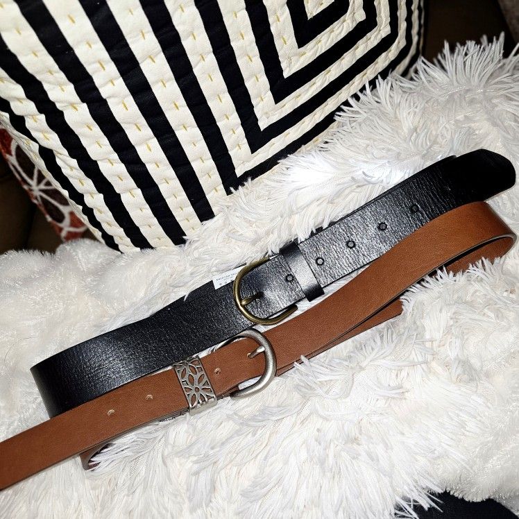 Black: American Eagle. 100% leather. Says size xs/s, but it's definitely not an XS. It's two inches longer than the Relic belt. $38 retail. NWOT. $8. Cognac: Relic. Man-made materials. Size S. $28 Retail. NWT. $5. Cash only. No contact porch pickup in Vancouver 98682 near Image Elementary. Orchards.