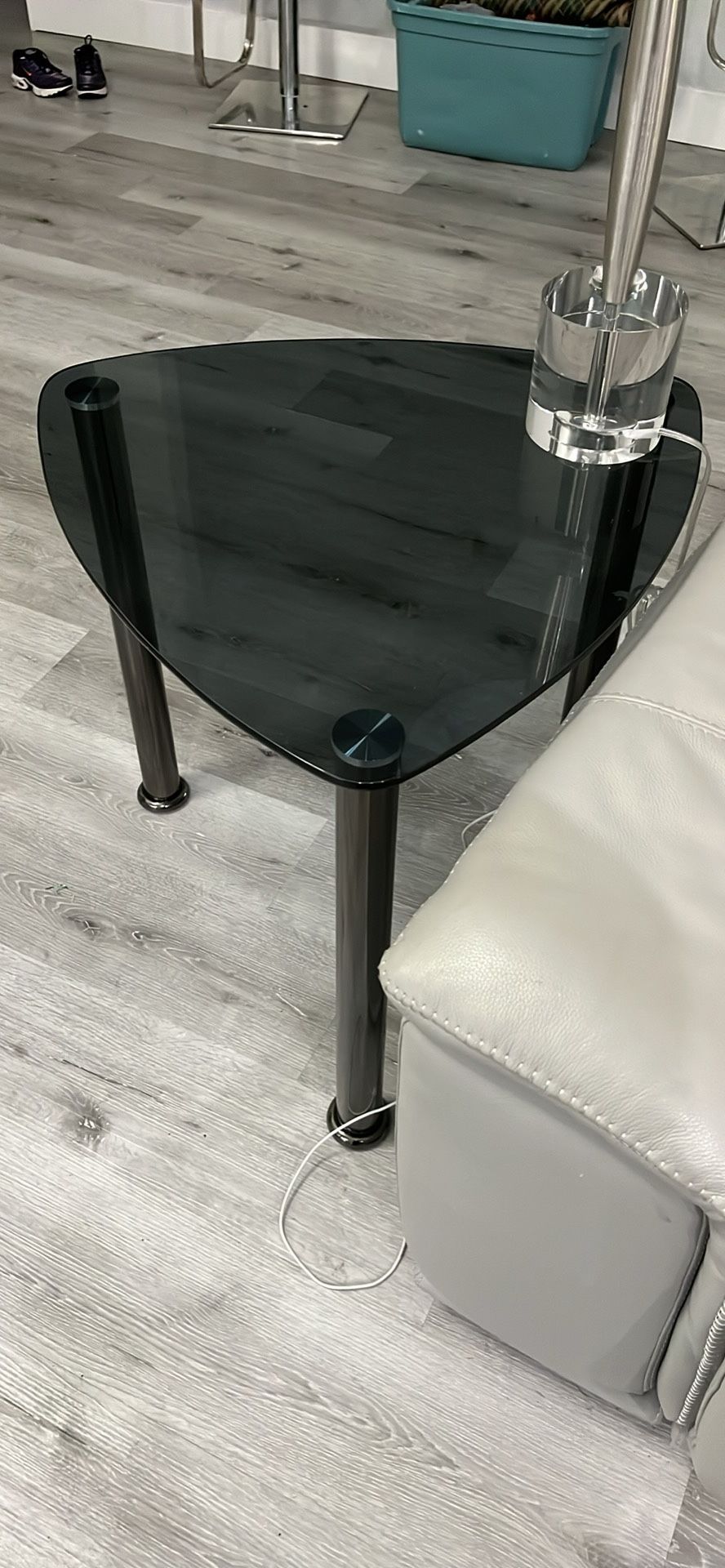 Set Of Two Glass End Tables Chrome Dark Grey Like New