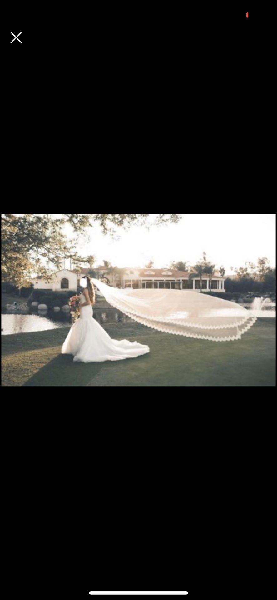 12 ft long wedding veil. Used once but in great condition. Lace scalloped detail on edges. A bit off white. Not sure the brand, there’s no tag and I bought this years ago in LA.