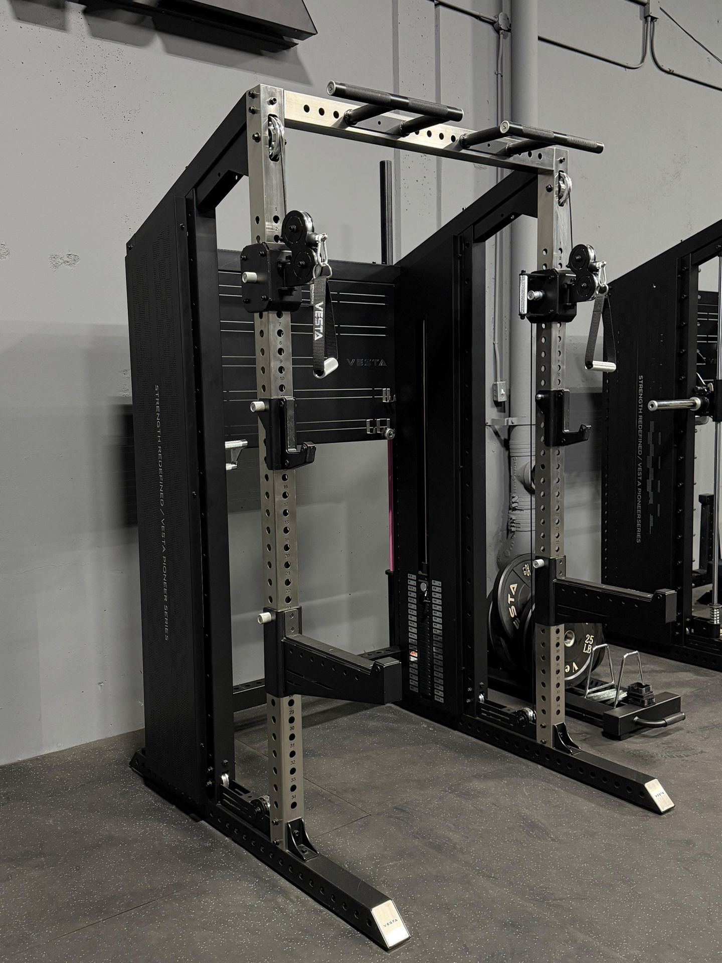 Vesta 3x3 Functional Trainer Rack β Dual 200lb Stacks π₯ Heavy Duty All-In-One Premium 3βx3β 11-Gauge Steel rack with brushed stainless steel uprights & laser-cut numbered holes. Built for serious lifters and full-body training at home or studio. πͺ Features: β’ 2:1 Cable Pulley Ratio β’ Dual 200 lb Weight Stacks β’ Adjustable Functional Trainer β’ Aluminum Pulleys β’ Knurled Pull-Up Bar (350 lb capacity) β’ 34 Height Adjustment Holes (21mm) β’ Front Foot Extensions for Stability π Includes: β’ Pair of D-Handles β’ J-Cups w/ Magnetic Pins (555 lb capacity) β’ Spotter Arms w/ UHMW + Magnetic Pins (555 lb capacity) β’ Adjustable Pull-Up Bar β’ Barbell Storage Hook β’ Accessory / Peg Board with Hooks β’ Polyethylene Liner Protection π Dimensions: Rack: 52β W x 87β H x 59β D Front Foot Extensions: 18β Spotter Arms: 17.5β (15.5β Barbell Cradle) Perfect for squats, bench press, lat pulldown, rows, cable workouts & more. π Vesta Fitness 8808 Pioneer Blvd, Santa Fe Springs, CA 90670 β° Open Daily 9AM β 5PM πΆ Walk-ins Welcome | No Appointment Needed Message for pricing & availability!
