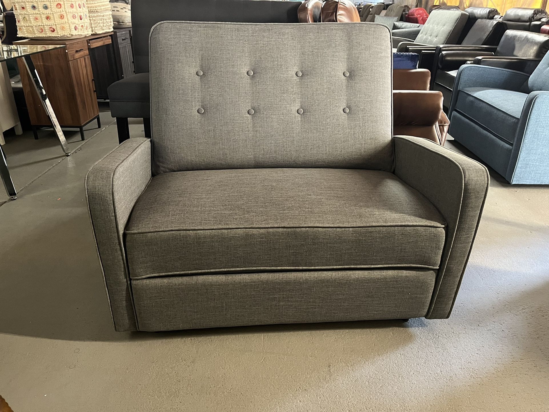 Mid Century Grey fabric manual Recliner 47in length 37in h