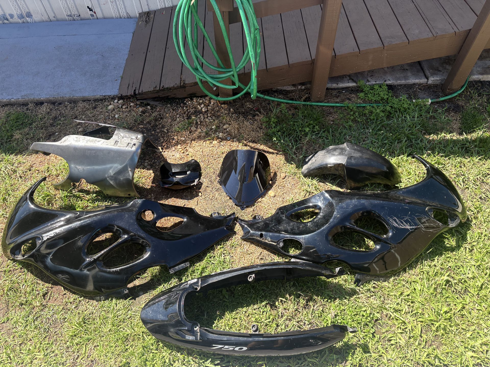 I'm selling because i just put brand new fairings on mine, they are a little scratched but nothing major. I'll sell them for any amount of money, i just need them off my hands because of the space. Shoot me any price. White suzuki stickers included.
