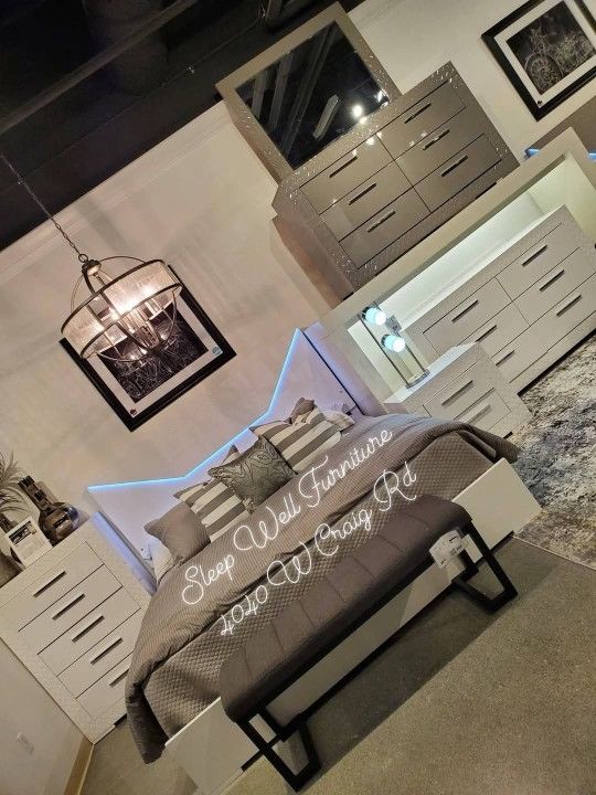 4pc Queen led light Bedroom set Bed frame, dresser, mirror, night stand 👉👉$1298 👉NOW! Available in king 🙋♂️👉SLEEP WELL FURNITURE 4040 W CRAIG RD LAS VEGAS Open 10-7pm Hablamos Español 👉We offer Financing💲 Take home it Home 👉$50 DOWN No credit required, Zero interest up to 120 days Select from Koalofi, Acima finance. Furniture Sectional Sofa Queen King Mattress Bedroom Bunk beds Dining table sets