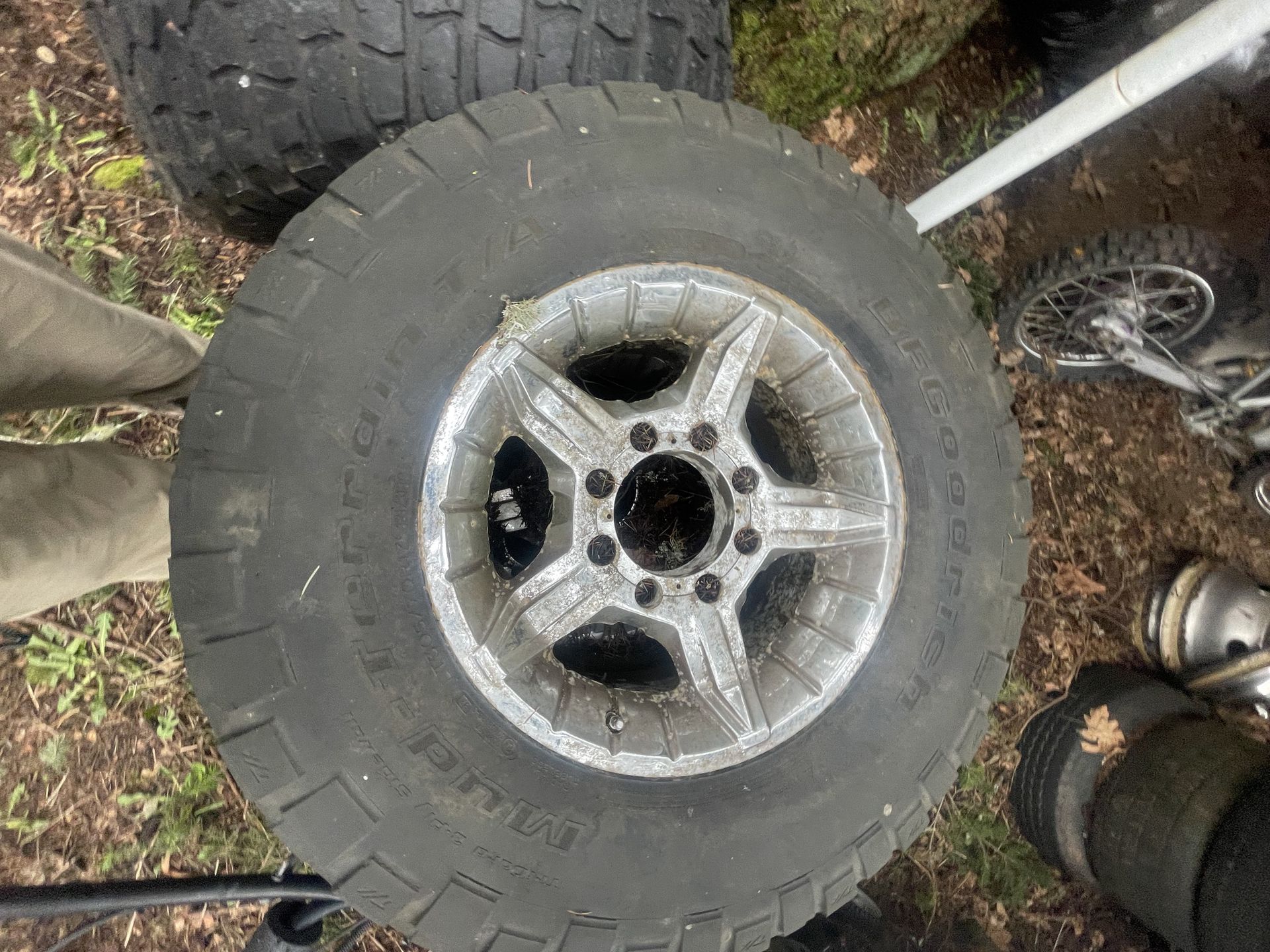Bf Goodrich 305/70/17 ford 8 lug rims and tires these were on my 2000 ford f350 rims have some pitting all tires hold air one tire has wear on the outer lugs $100 Graham area