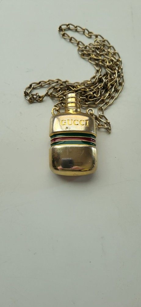 Gucci purfume bottle with chain older one solid metal brass gold tone vintage selling $995-00 dallars on eBay no perfume in bottle