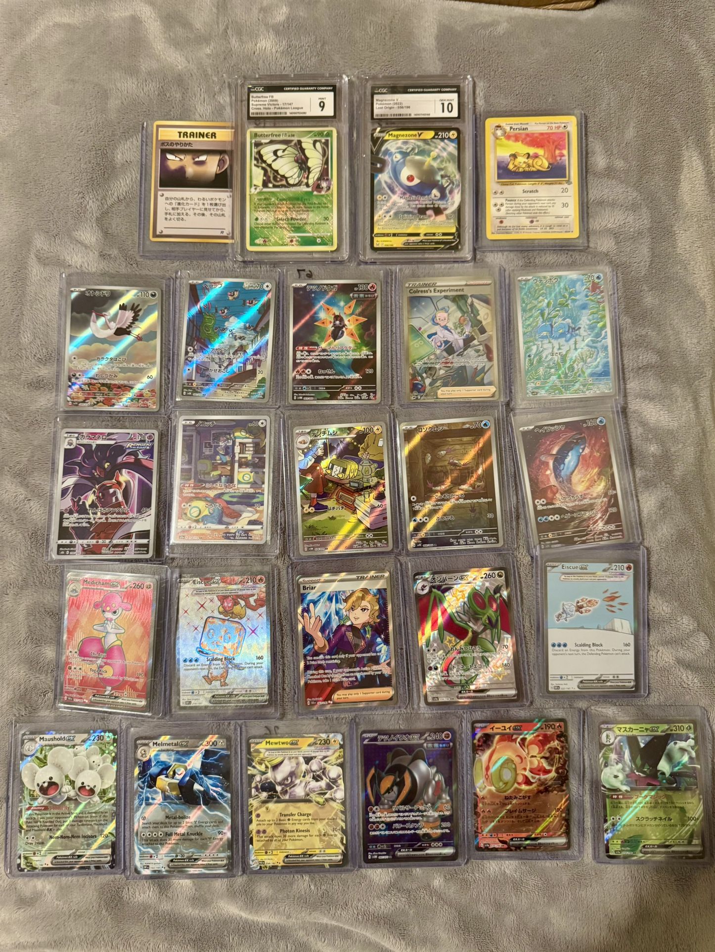 The cards are what I have left from my Pokemon mystery pull box I used on whatnot.. The condition of most of the cards are near mint with some being LP and a few vintage with MP condition. I scanned all these cards using the Rare Candy app and a calculated the market value for the remaining cards I’m asking $180 or $200 in trade value. I’m mainly interested in 151 cards or sealed product. I’m still trying to finish my master set. Let me know what you have to trade and we’ll see what we can make happen.