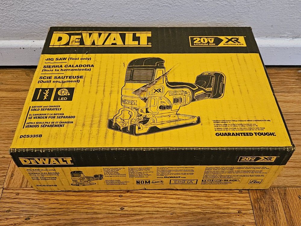Brand New in sealed box. Firm price. - Brushless motor delivers efficient performance for longer runtime (versus DCS331 Jigsaw) - Compact size with barrel grip for maximum control - Bright LED light helps to illuminate dimly lit work surfaces - Variable speed dial provide precise speed control - All-metal, lever-action keyless blade change allows for quick and easy t-shank blade changes - Integrated dust blower helps clear line of sight while cutting - All-metal, keyless shoe bevel with detents at 0, 15, 30 and a positive stop at 45 for easy adjustment - No-mar shoe cover to help protect work surface from scratches - 4-position orbital action provides control of cut quality and speed - Accepts t-shank jigsaw blades for optimal holding power - Ideal for curved cuts and cutouts