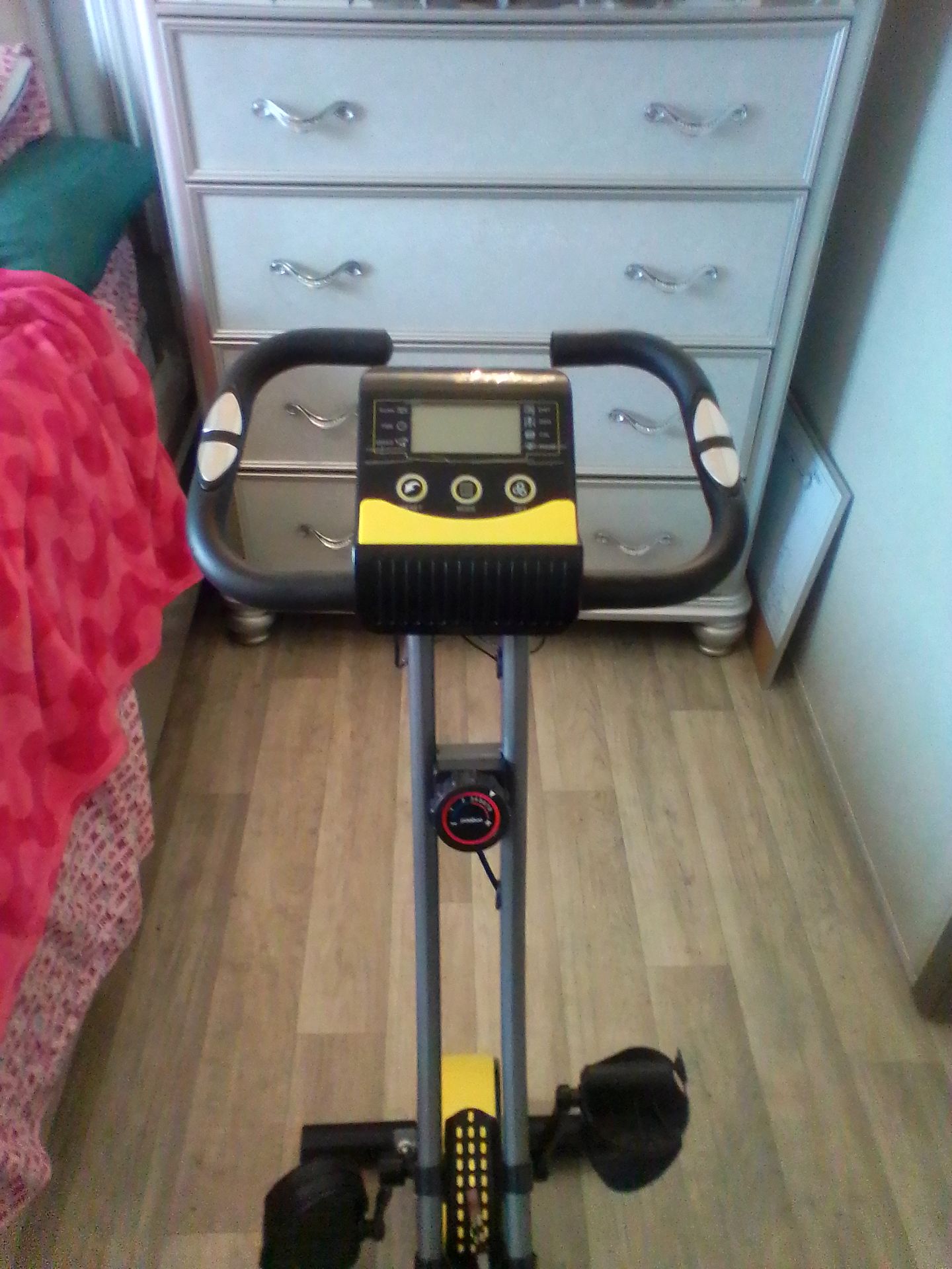 High quality exercise bike in excellent condition perfect for home workouts features a built-in scan timer and speed odometer to track your progress in real time offers a smooth quiet ride with adjustable resistance for all fitness levels clean well maintained and ready to use message me for more details offer is negotiable