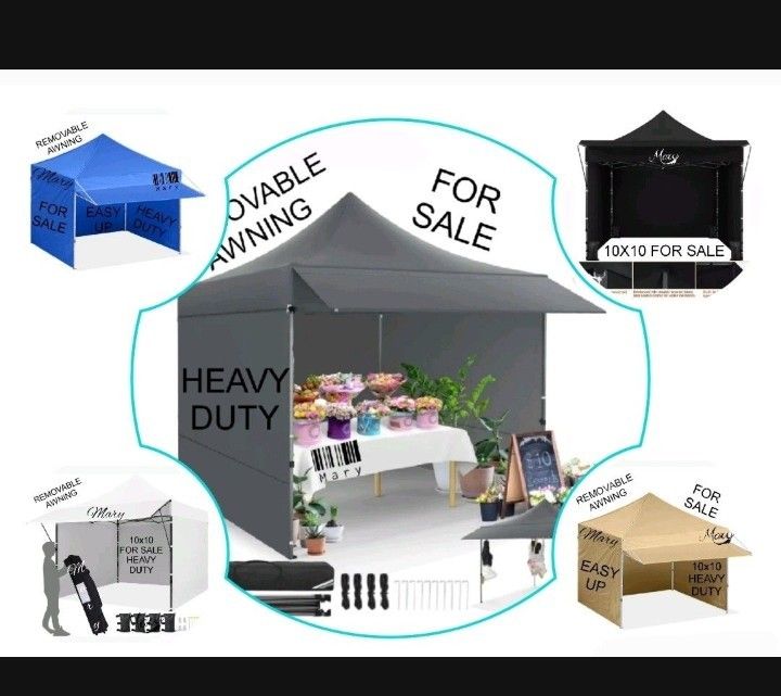 10x10 Pop up Canopy Tent with Sidewalls - Easy up Canopies with Awning, Outdoor Tents for Parties, Market, Commercial Events, White