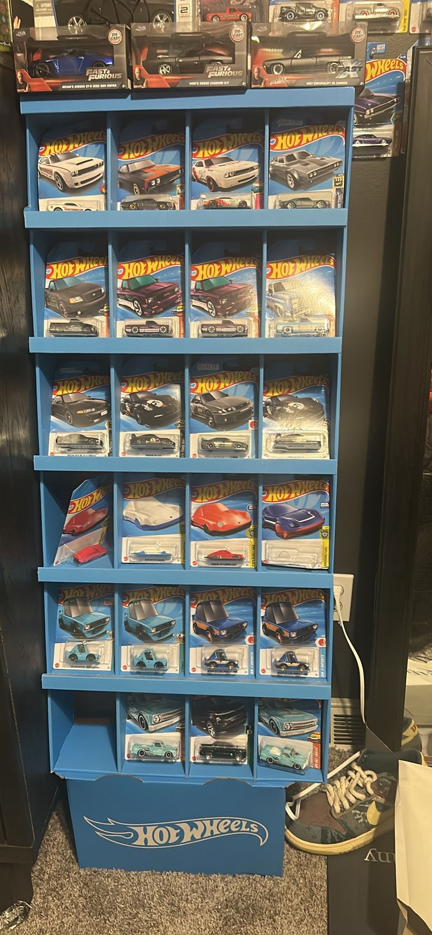 Hotwheel cardboard stand you find at grocery stores Cars not included but can be purchased