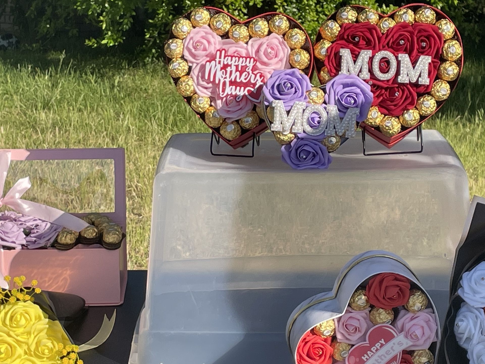 Happy Mother’s Day gift hearts and buque flowers available we deliver