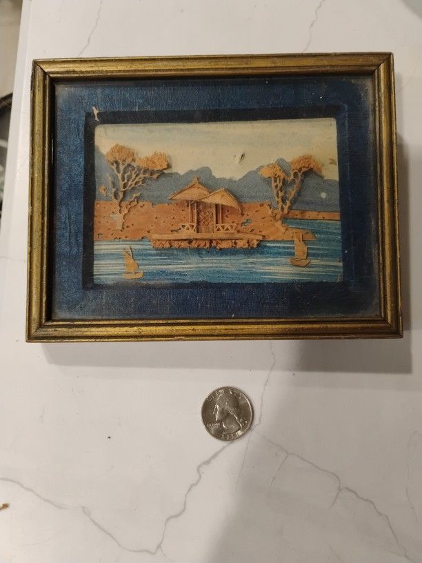 Vintage from the 1930s Chinese cork 3D picture framed asking 30