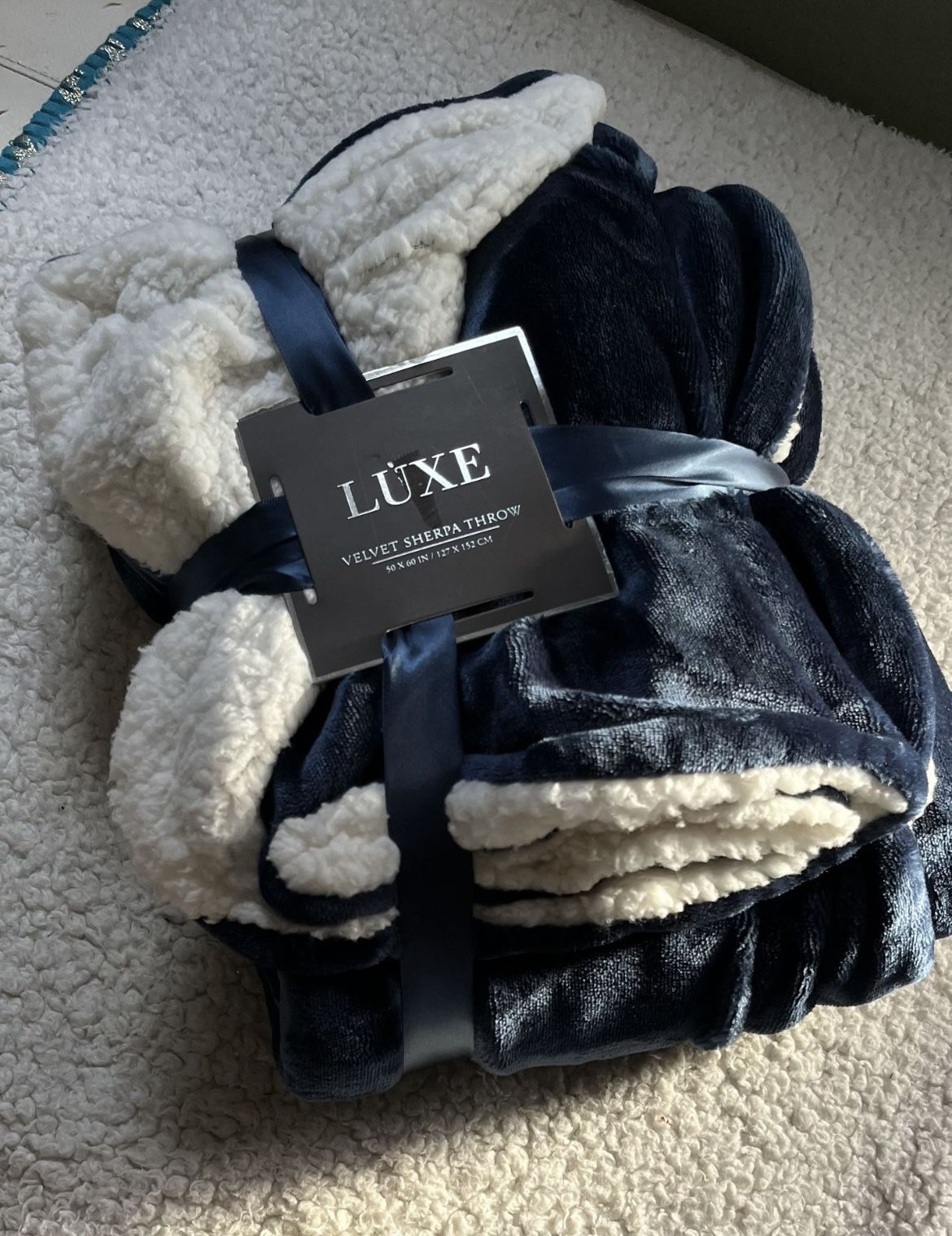 SERIOUS BUYERS New Plush navy blue and Ivory Throw $25 each π Pick up Before 5 pm- Rialto Check my page- mas ofertas