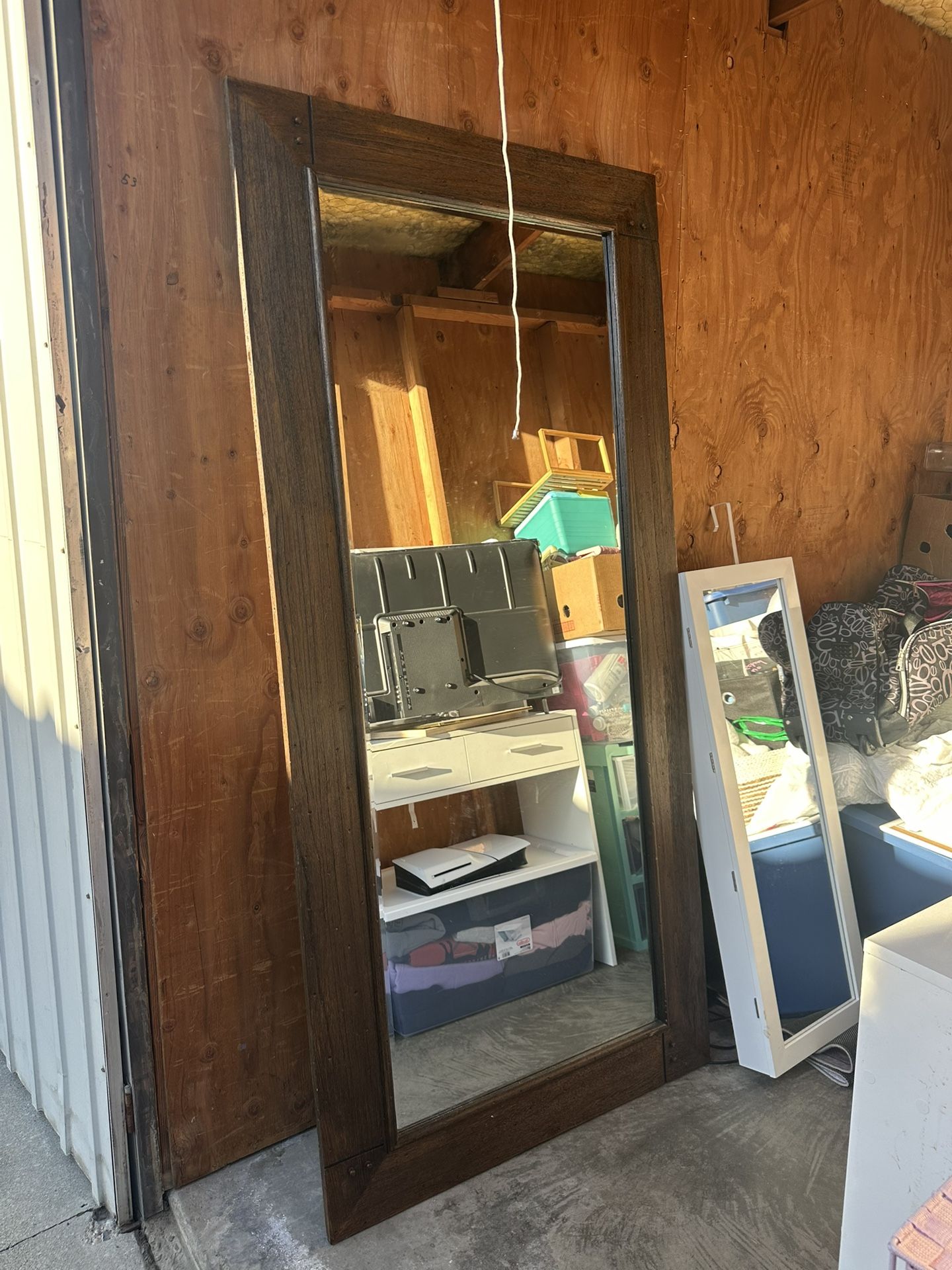 6 feet brown wooden mirror