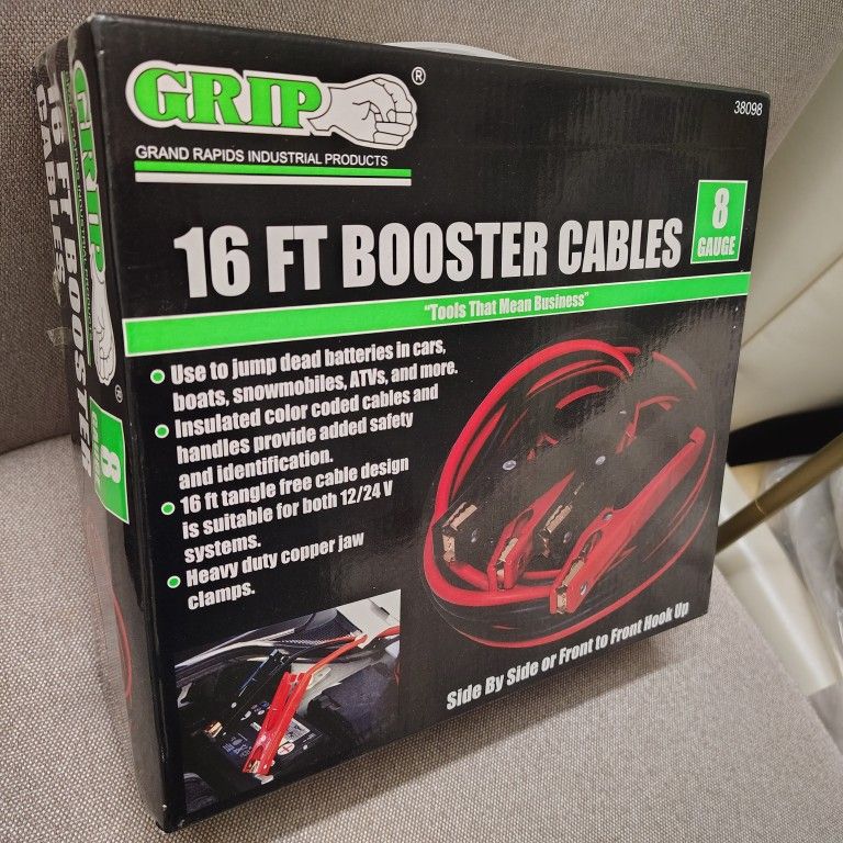 16 ft tangle free cables with heavy duty copper jaw cables Jump dead batteries in cars, boats, ATVs etc Suitable for both 12/24 V systems Brand new in box