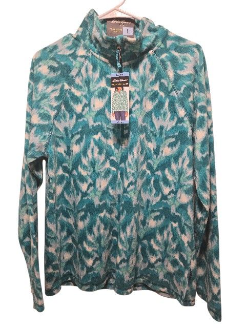 EDDIE BAUER (L) Womens 1/4 Zip Polar Fleece Pullover Top Ikat Fabric NWT $70