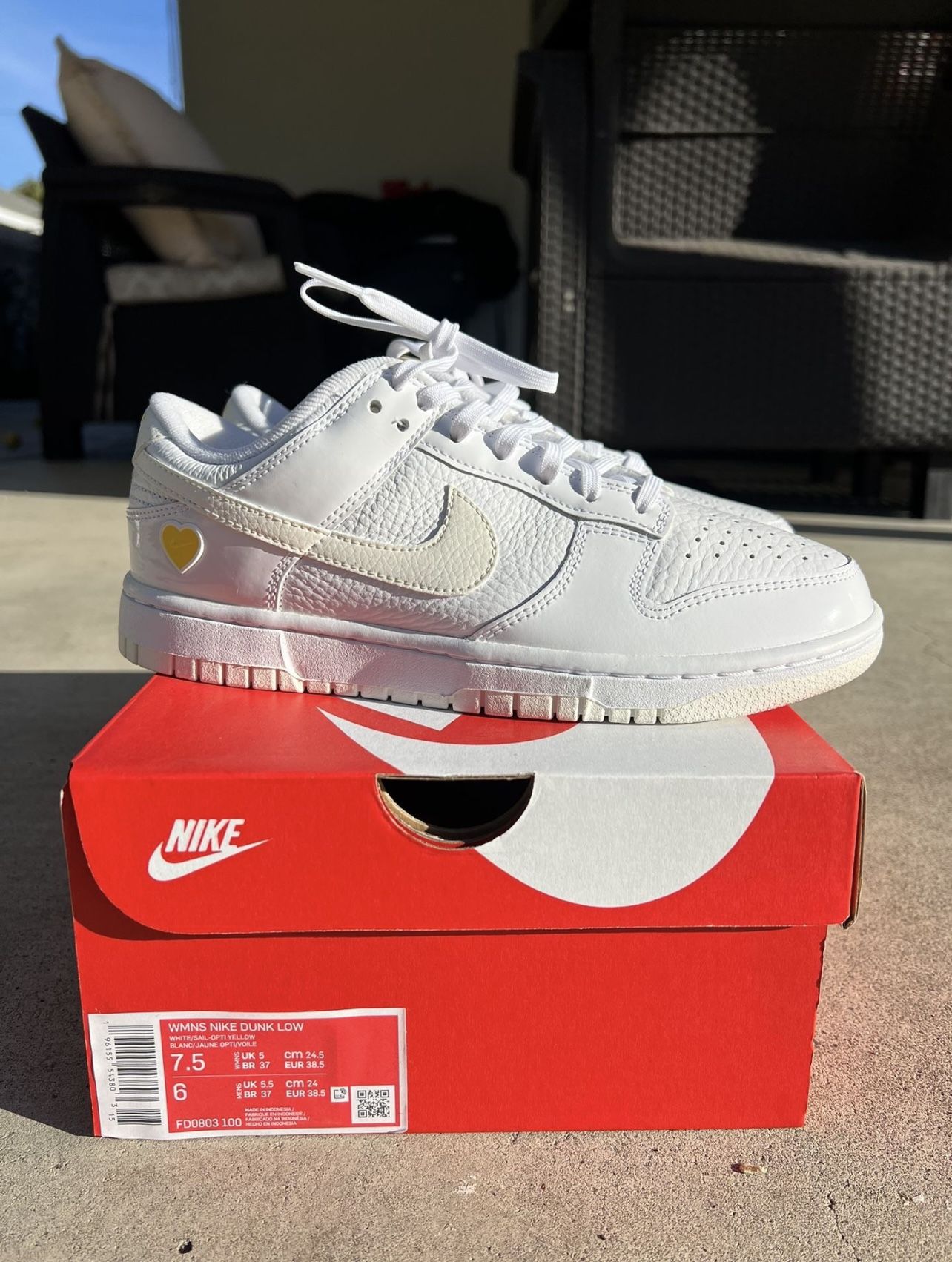 brand new nike dunk valentine’s day yellow heart $80 obo women’s size 7.5 men’s size 6 pick up in lake forest