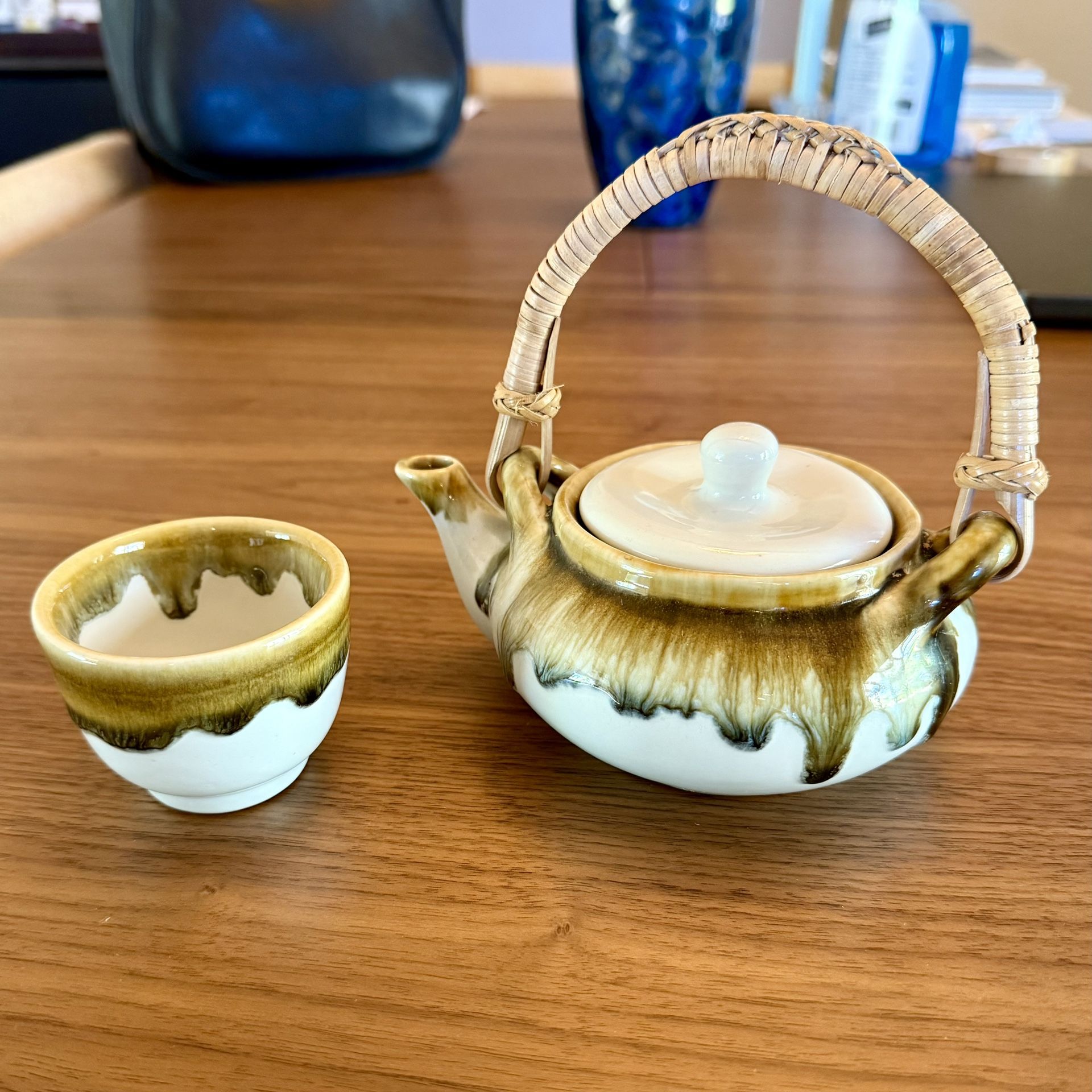 Purchased in Thailand! 🇹🇭 ❤️ Ceramic personal sized teapot and cup. Teapot is personal size, 6in W x 6in H Cup is 2.75in dia. x 2in H