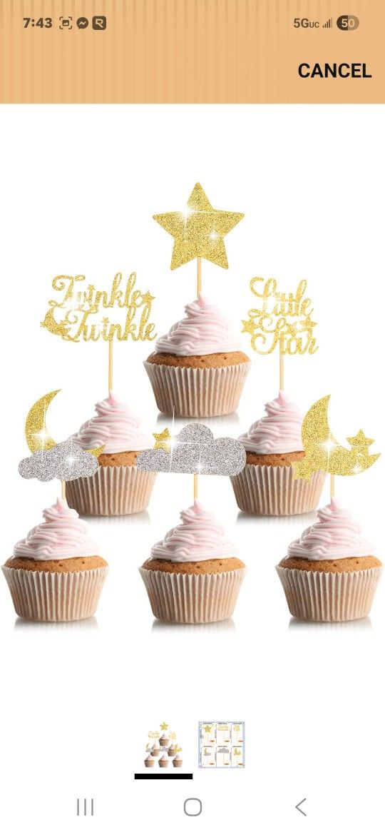 48 Pcs Glitter Little Star Cupcake Toppers Moon Cloud Cupcake Picks Twinkle Twinkle Little Star Baby Shower Decorations for Kids Birthday Wedding Part