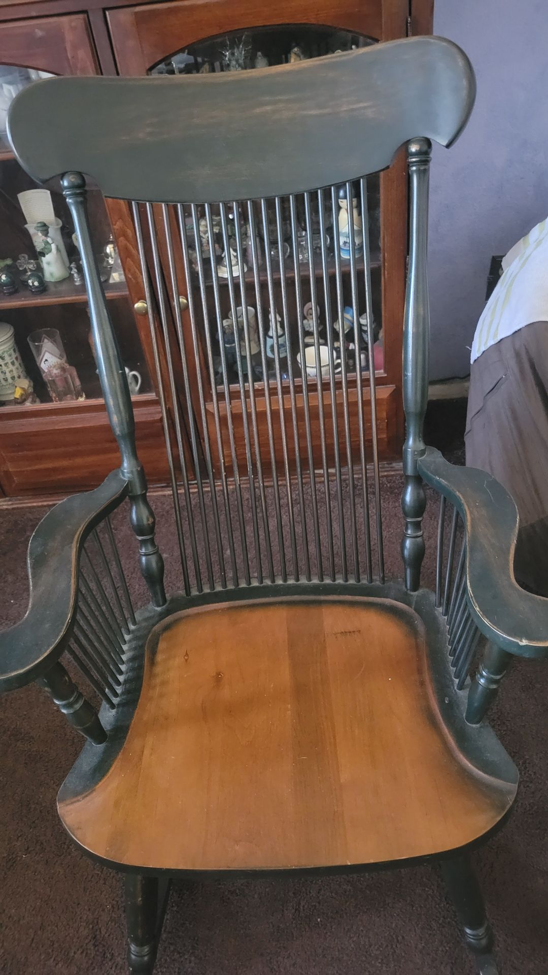 Windsor style rocking chair in good condition for sale due to downsizing. Am asking $150& willing to negotiate