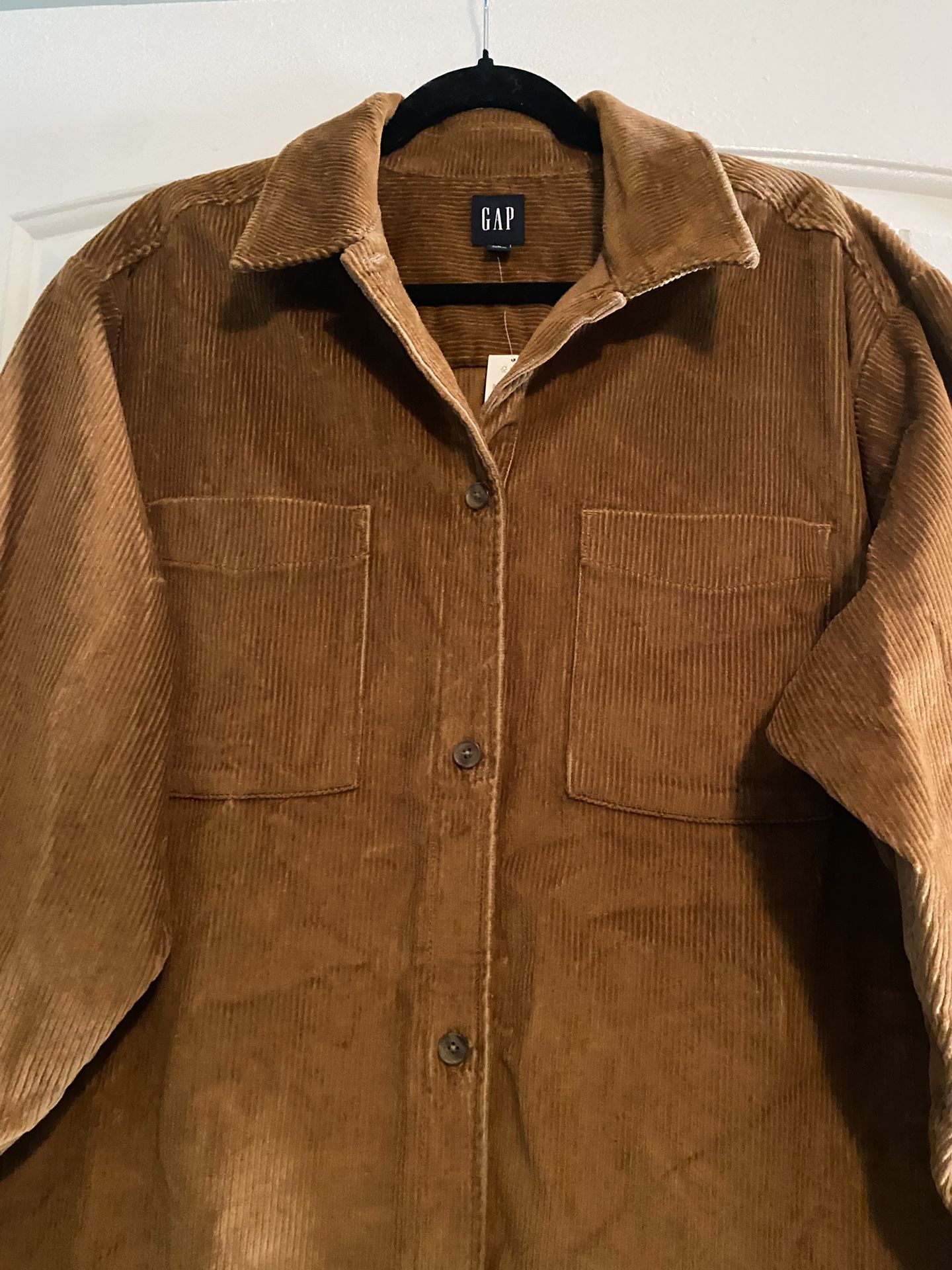 New men’s large brown corduroy shirt/jacket. It’s in great condition still has tag. Perfect for fall/winter weather or even great as a gift. Gap is a nice brand.