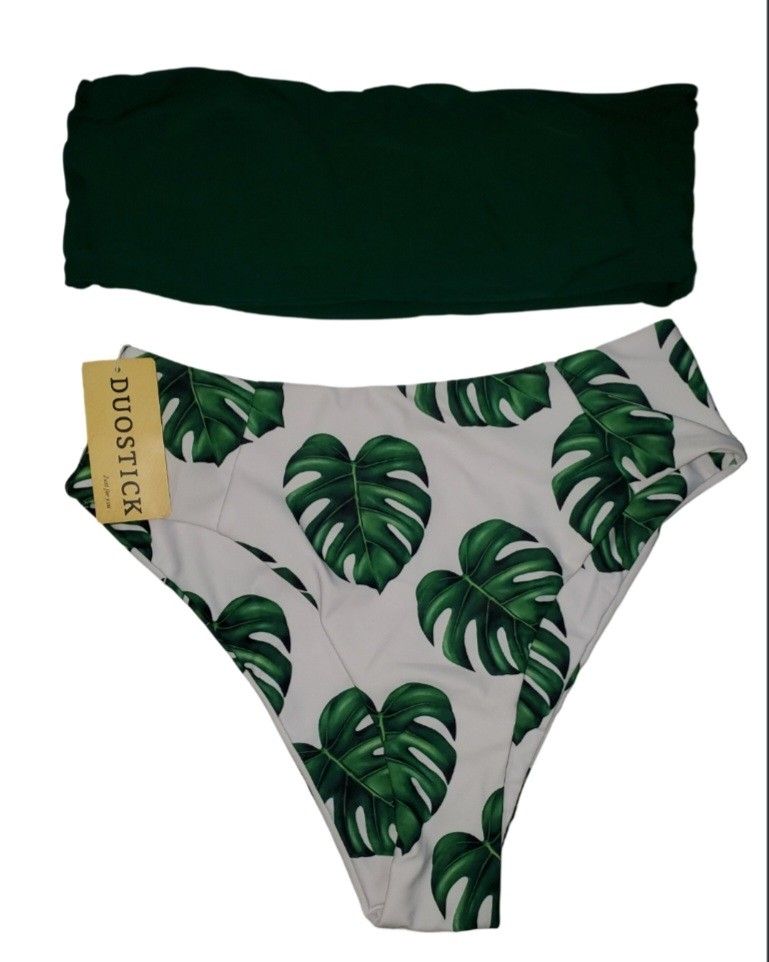 New with tags. Women's size large. Green/white. Strapless, two piece swimsuit