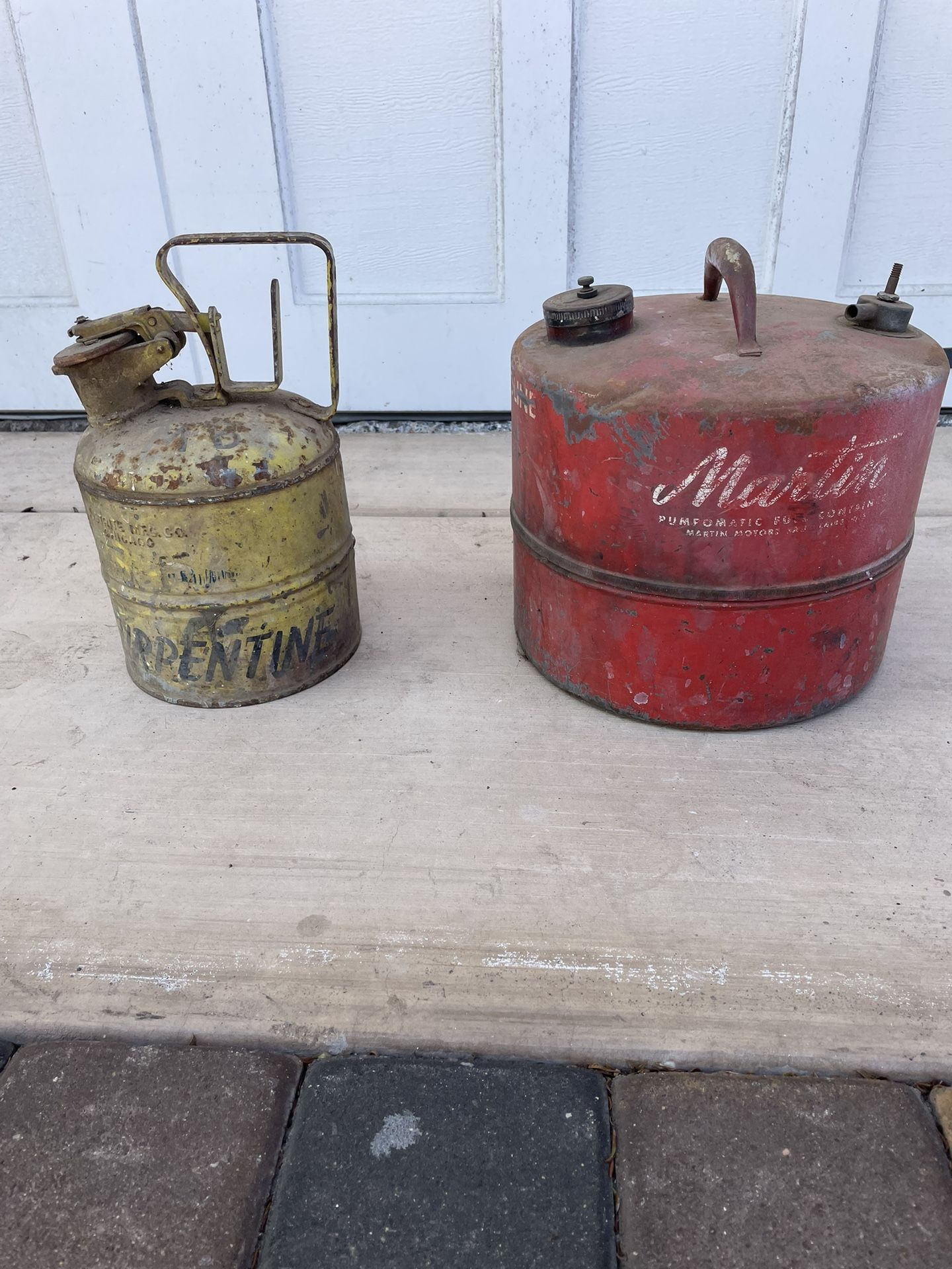2 vintage cans Red can is a Martin gas can Yellow is a justrite safety can $100 for both