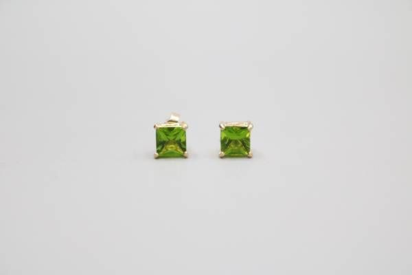 14K Yellow Gold Green Stone Stud Earrings 1.0g