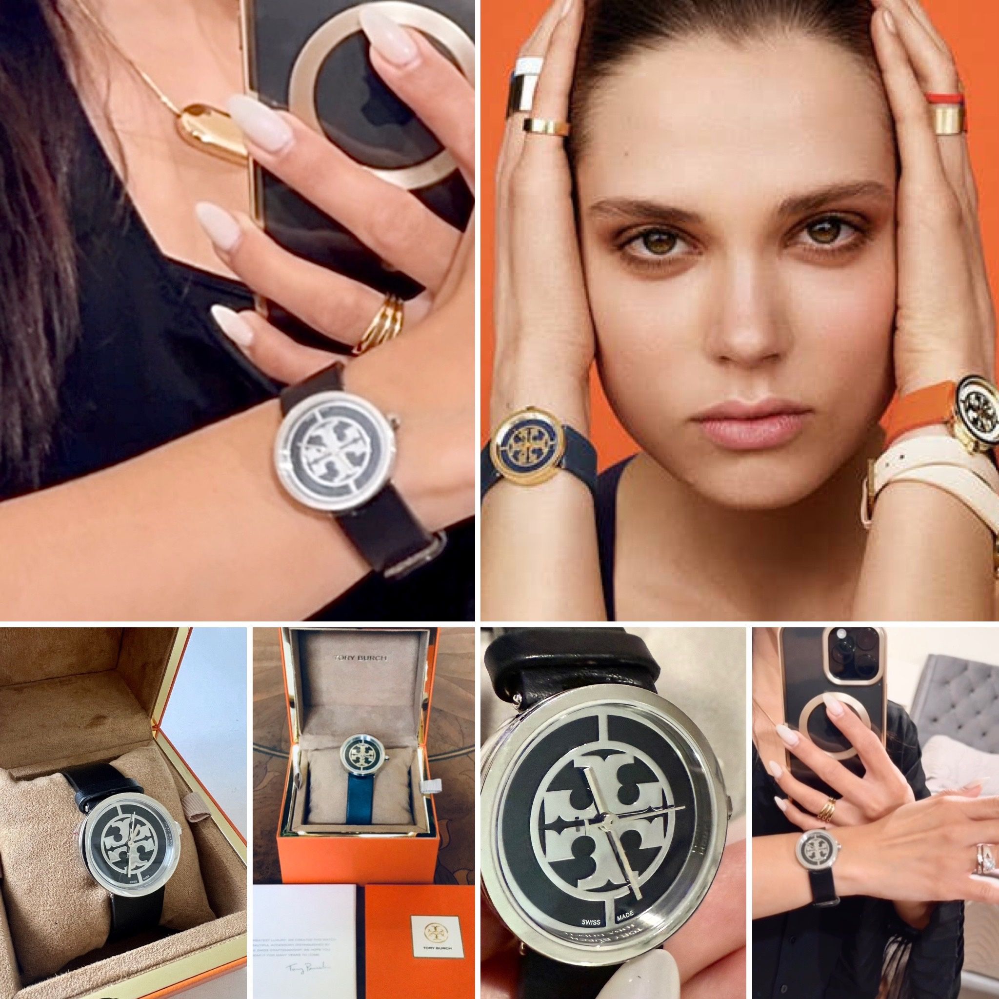Authentic Tory Burch Women Watch, black leather, silver metal. Great condition. Retail price $350.00