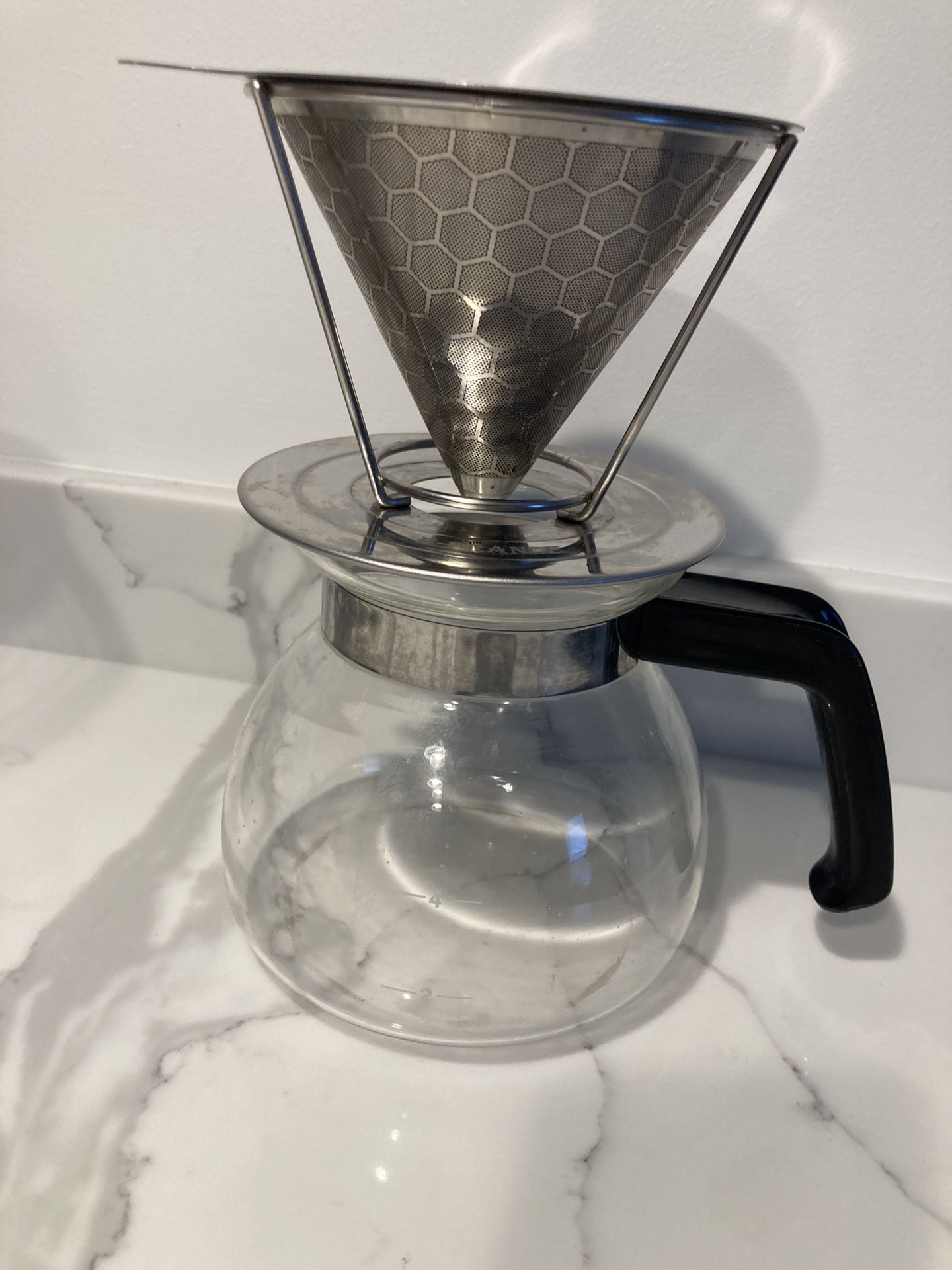 Preowned Good Condition Melitta 10 cups Black Pour-Over glass coffee pot E-PRANCE Pour Over Coffee Dripper Stainless Steel Reusable Filter W/ Stand Pick up only $15