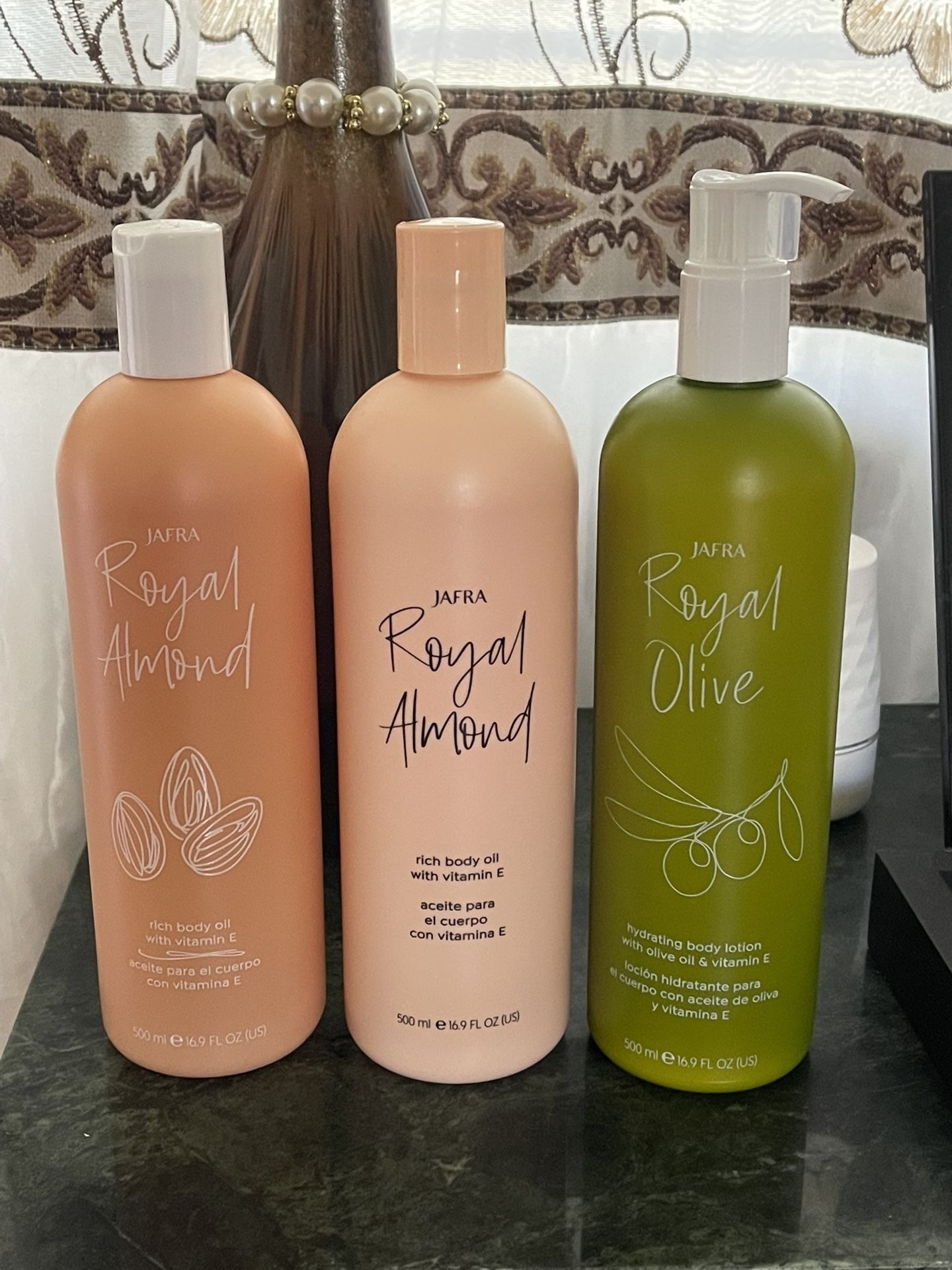 Son los grandes .. 16.9 floz 🌰-Almendra 🫒-Olivo Locion hidratante con aceite y vit. E para piel muy reseca . 🌹-Rosas’ también disponible $55.00 cada uno ,. @JAFRA