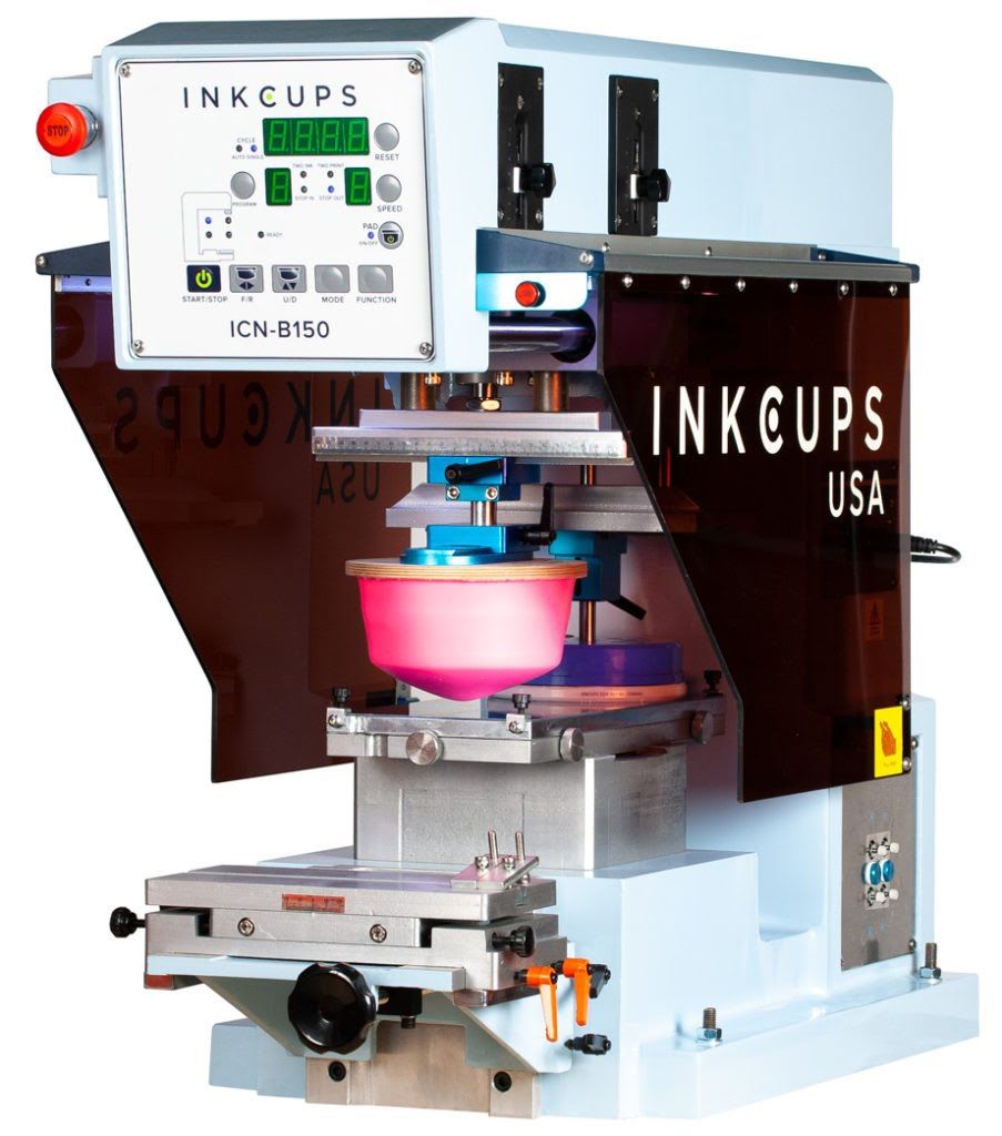 Brand new Ink Cups Pad Printer B150 series Print capability on many items such as mugs, pens, stress balls, glass cups, golf balls, T shirt neck labels & many more items. Brand new at 12,000 Located in Riverside, CA