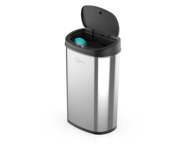 Mainstays 13.2 Gallon Trash Can Motion Sensor Kitchen Trash Can Stainless Steel Brand New Never Opened Box is damaged $30 San Jose Local Meetup The Mainstays Stainless Steel Motion Sensor Trash Can is perfect for large families or busy environments. For improved cleanliness and hygiene, this trash can operates with infrared motion sensor technology to allow you to simply wave your hand above the sensor at the front of the lid to open it automatically. The lid will remain open as long as there is an object in front of the sensor and close gently five seconds after the object is removed. Perfectly sized to accommodate any standard 13 gallon trash can liner, this durable stainless steel garbage can features an oval design with flat sides to allow it to be placed flush against a wall or kitchen island. Infrared technology opens the lid with just the wave of a hand Hands-free motion sensor technology improves cleanliness and hygiene >Lid stays open while objects remain in front of sensor Lid closes gently on its own five seconds after objects are removed Re-triggering technology re-opens the lid when any object interrupts the infrared beams during closing to prevent lid from closing on Advanced infrared technology preserves motion sensor battery life for more than 10,000 openings