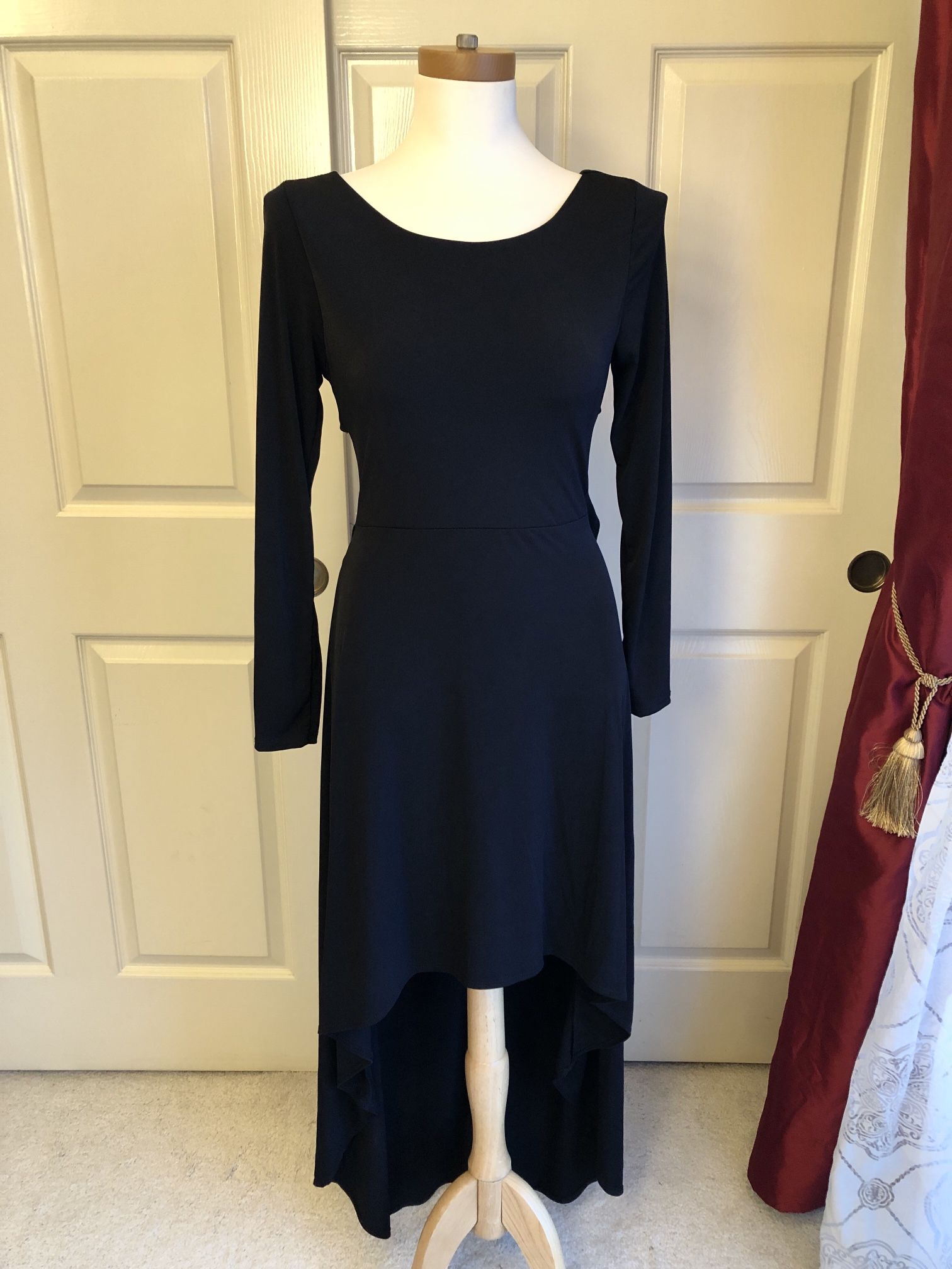 Never worn. Vintage Venus high low long sleeve dress criss-crosses in the back and has a boat neck cut in front. From a nonsmoking home. Pickup near Desert Inn and Fort Apache