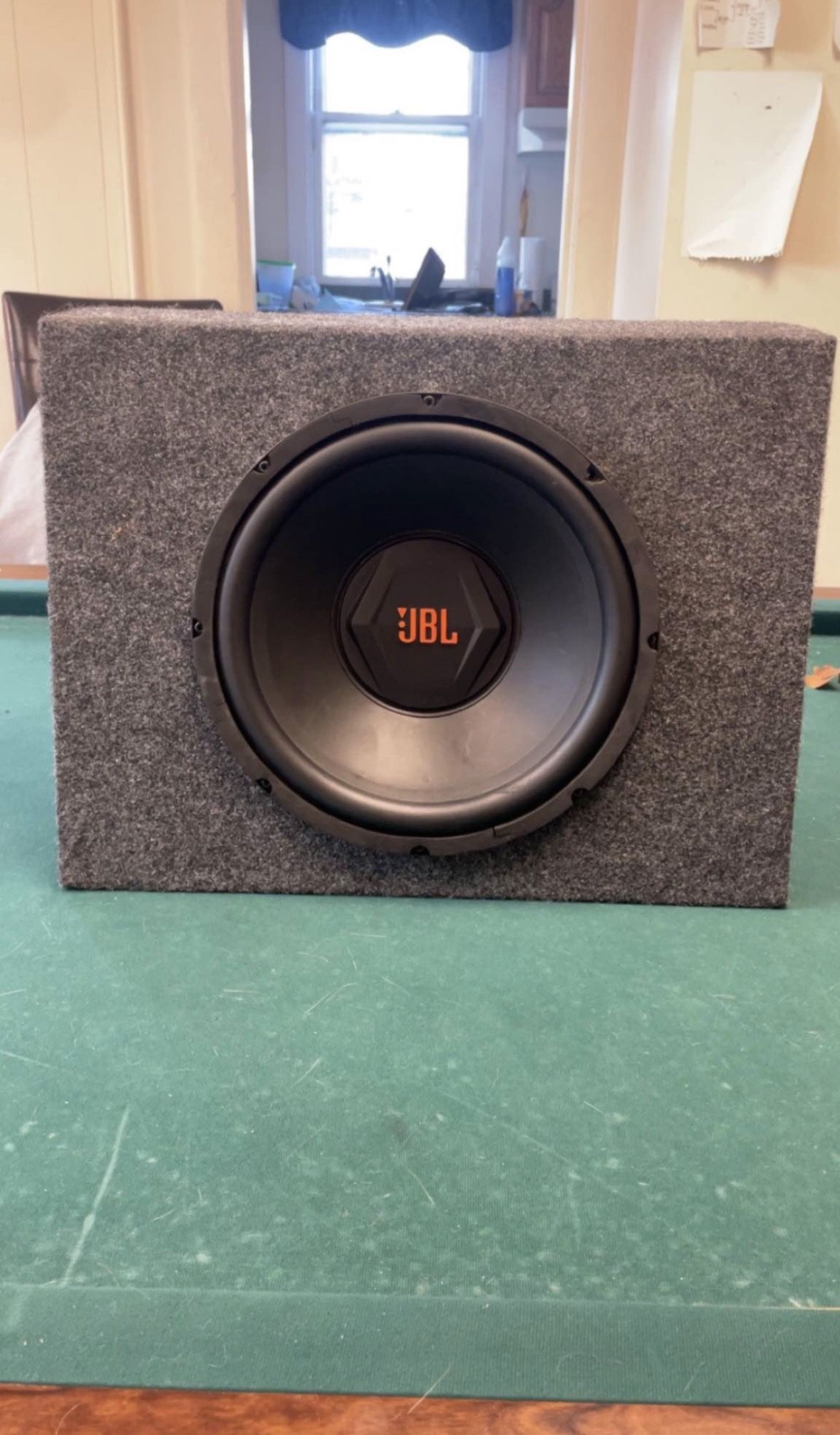 12 inch JBL subwoofer in a sealed box. Works great.