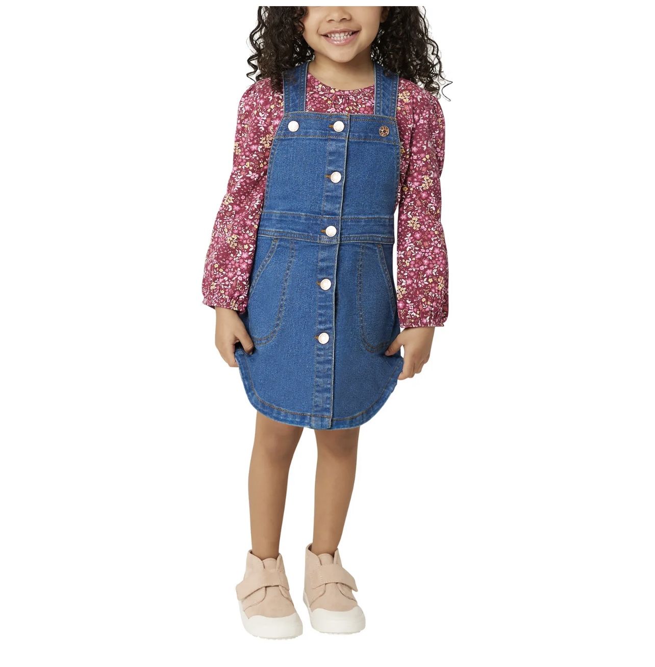 BCBG Girls Kids' 2-piece Jumper Set Size : 4T Color : Red set: blue jumper with red floral long sleeve shirt Adjustable straps Front pockets Made in Bangladesh