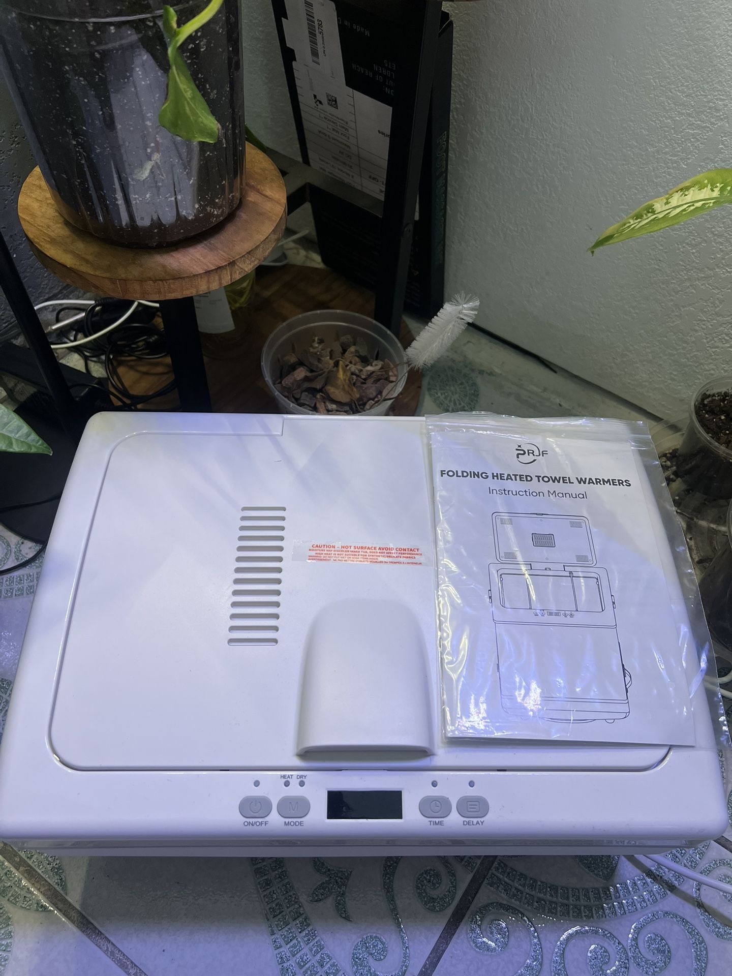 Like-new collapsible towel warmer, opened box. Heats towels perfectly, easy to assemble and store.